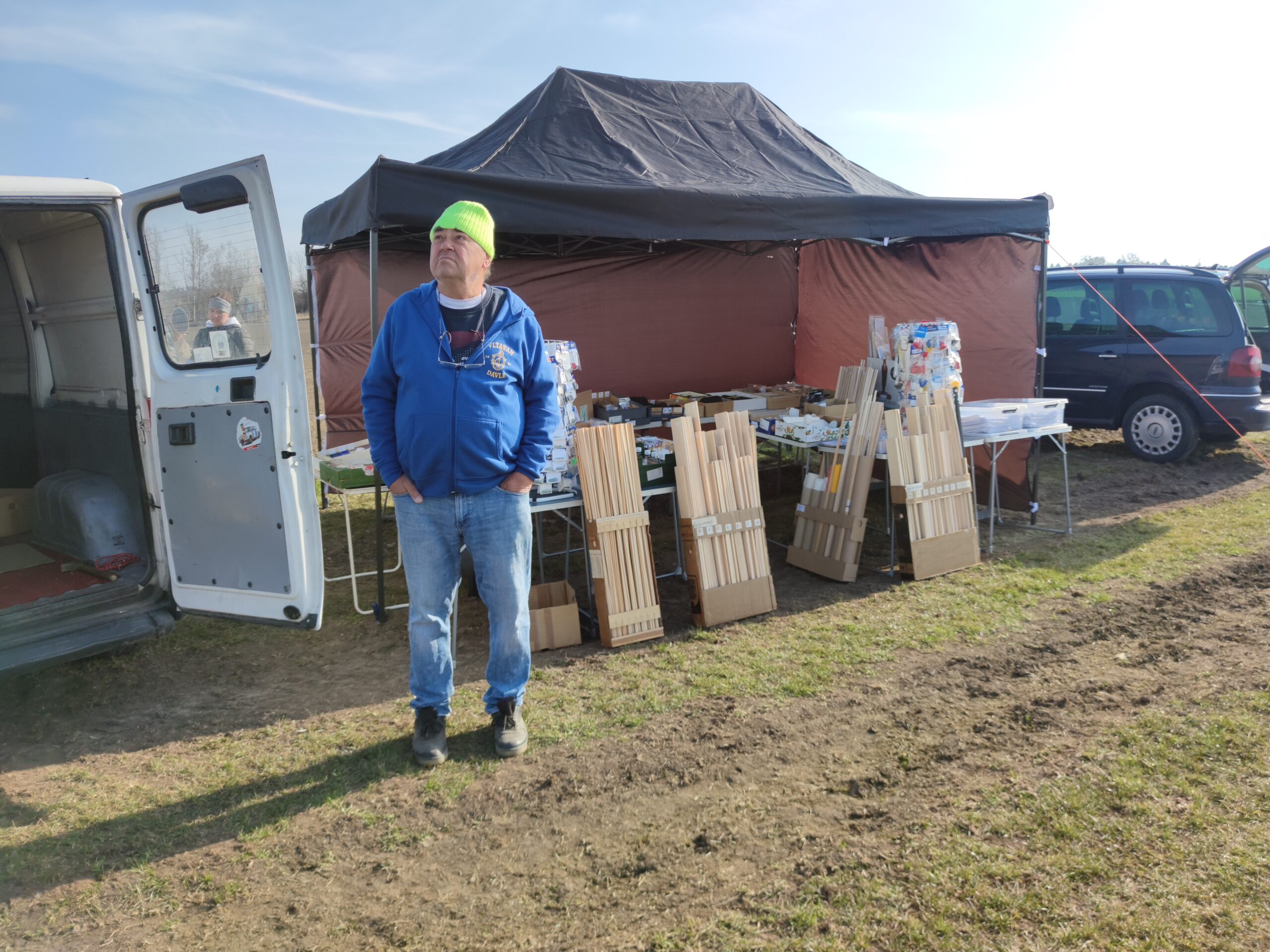 Takže v neděli jsme se sešli na letišti Veká Dobrá v hojném počtu. První, kdo byl na letišti byl nedočkavý Jirka Hruška, který mi volal, kde jsme. Vysvětlil jsme mu, že je tam příliš brzo. Tey odjel na snídaní a objevil se v devět. Když jsem přijel na letiště já, byl na místě Pepa Kubeš. Rozložili jsme společně jeho prodejnu modelářských potřeb. Když jsme skládali stan, tak bylo znát, že fouká více jak 3 metry. Ale vítr se pomalu uklidnil a bylo nám lépe.