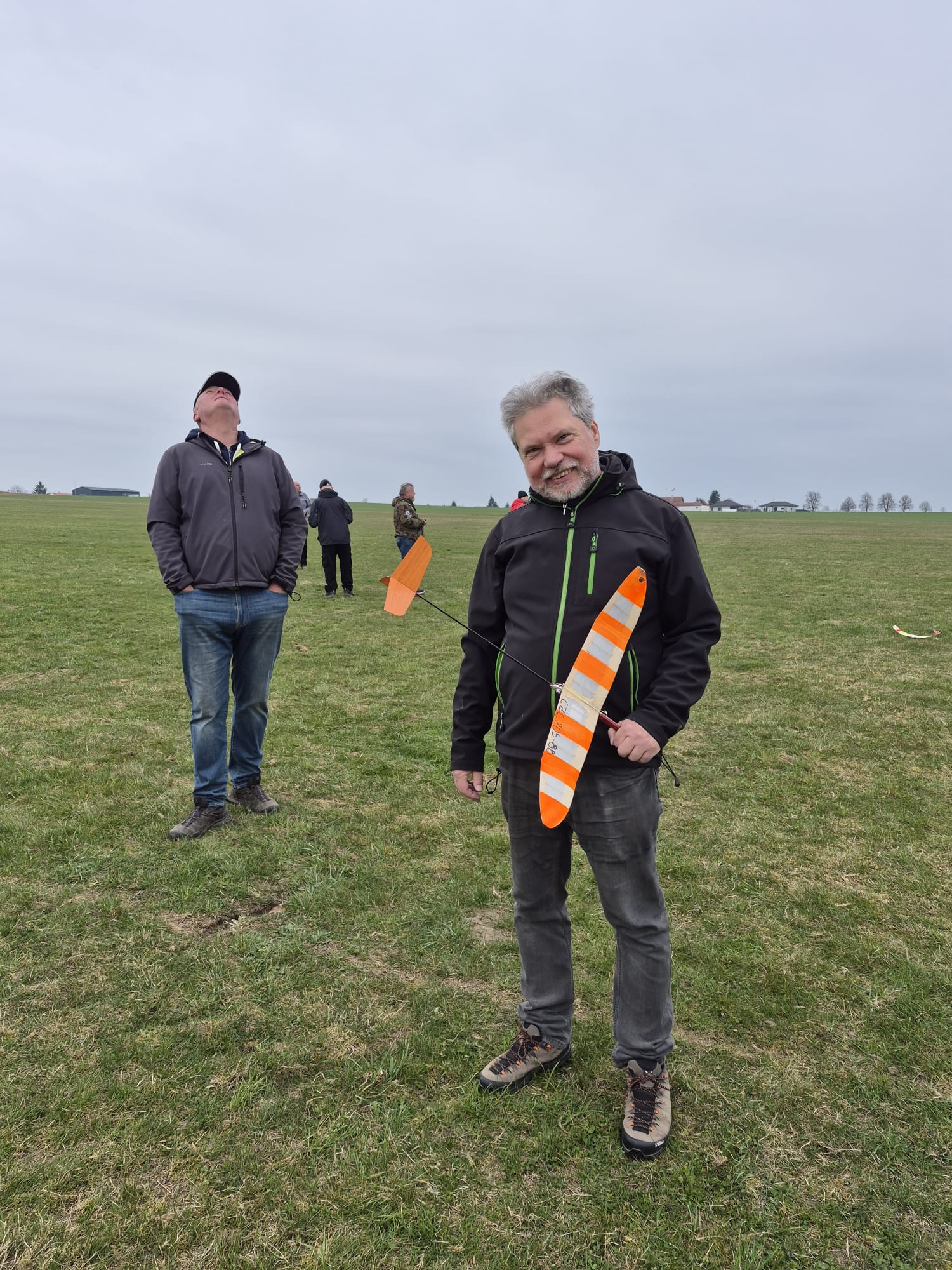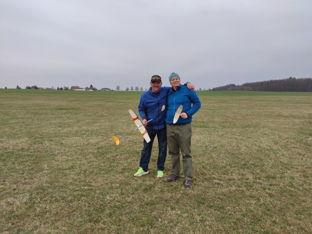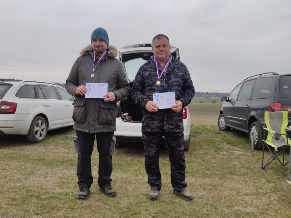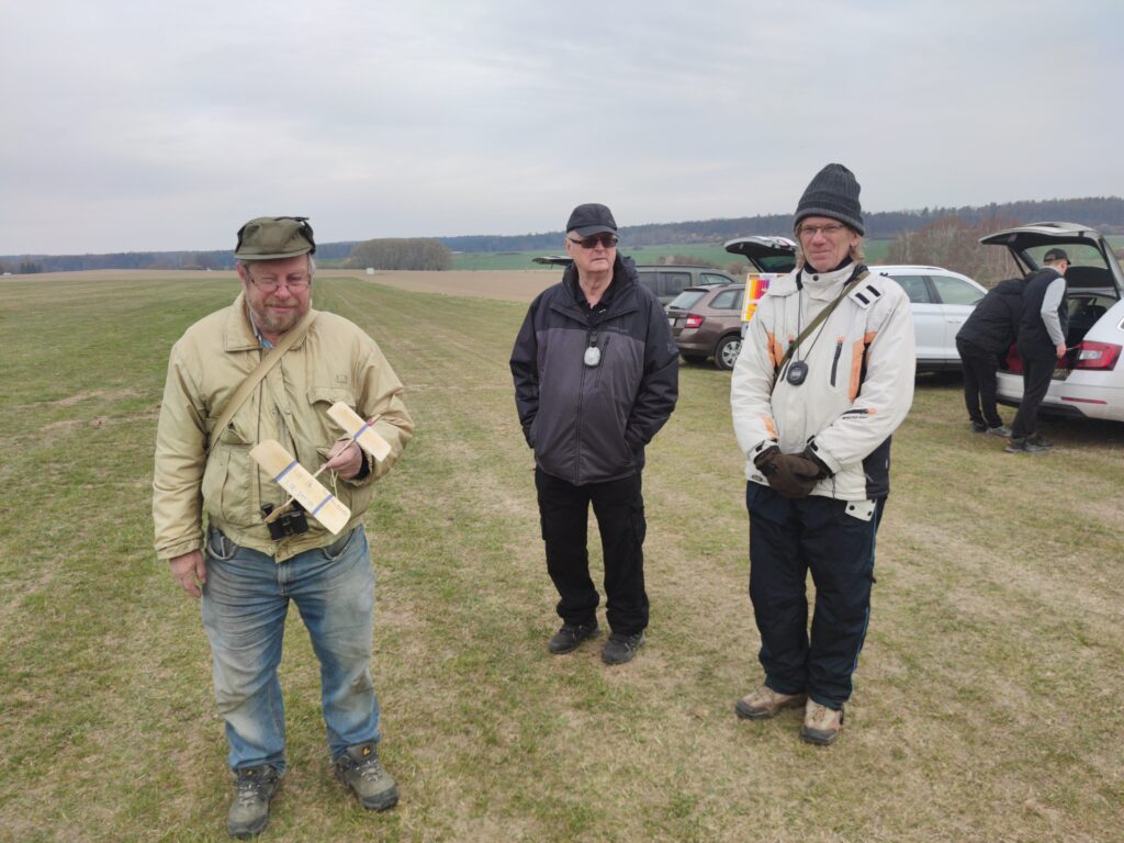 Protože jsme nevěděli, jak to s tím počasím vlastně bude, vrhli jsme se ihned do toho. Vítr se uklidnil na 1-2 m/s a vzduch alespoň ze začátku nám stroje nosil ochotně nad hlavami. Jirka Šífi nezapálil determalizátor, a tak se prošel, a nakonec se s modelem rozloučil. Nenašel jej. Ale protože měl zásobu, vtáhl další pěkně létající model, a nakonec z toho byl skvělý celkový čas. Kamil si dával s lety načas. Ale jeho výkony byly velmi dobré. Již zapomněl na minulé dvě soutěže s třískami. Dařilo se Zdeňkovi Vrbovi, byly to lety za šedesát.
