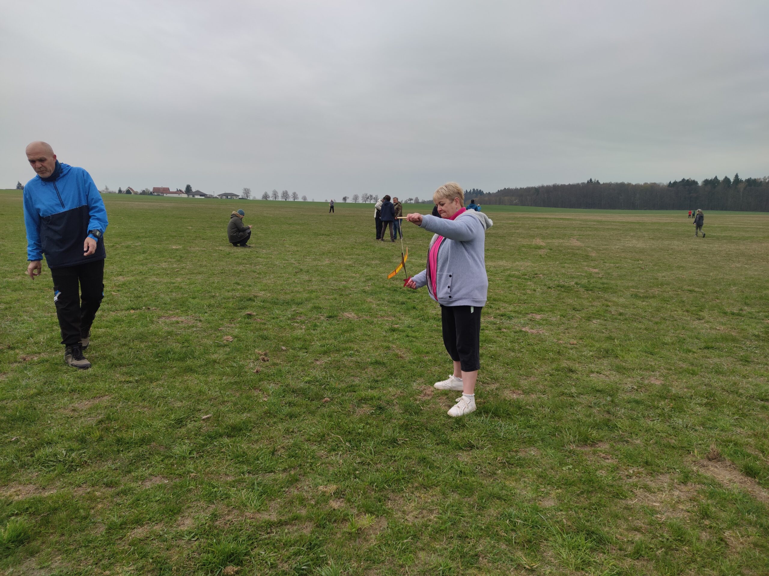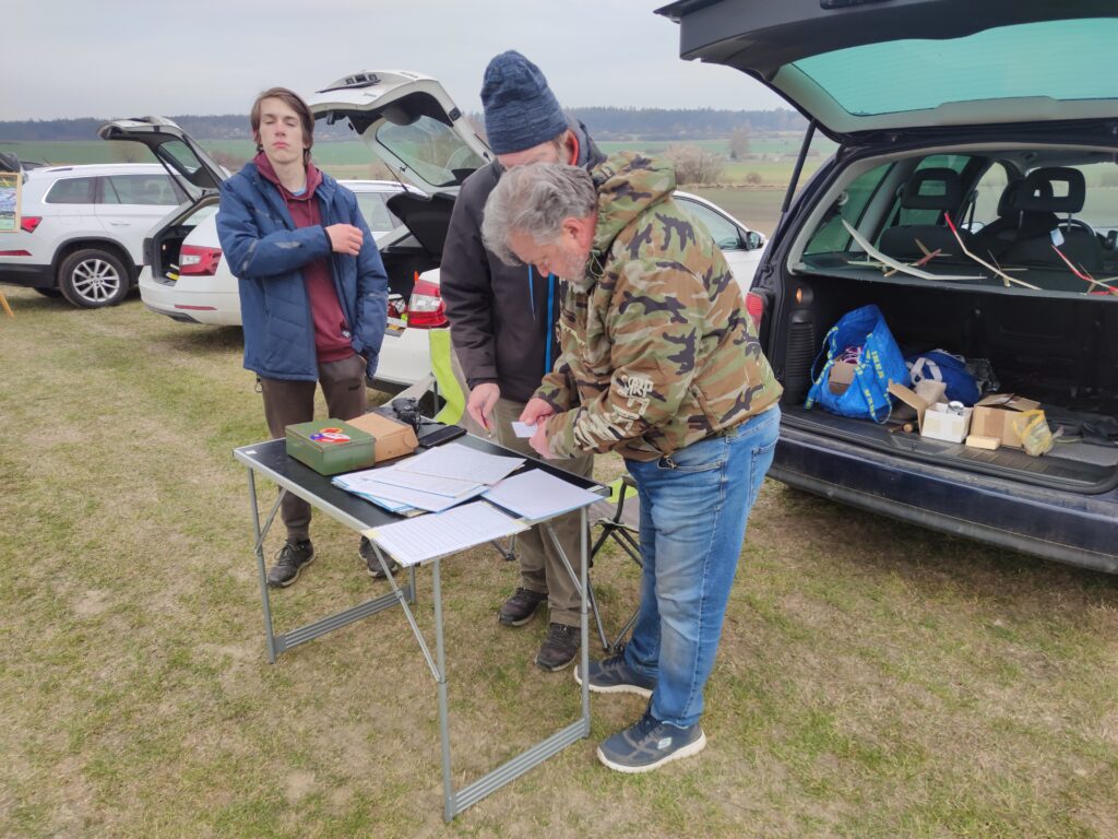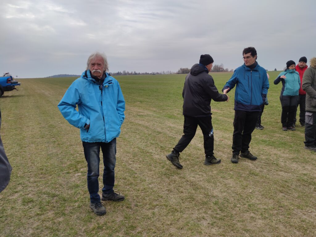 Vzduch byl dobrý, nosil hlavně po ránu. Pak to už bylo typicky jarní počasí, sem tam úzká bublina a také klesáky. Mezi prvními dorazili kamarádi, tedy Pavel, Radek a Štěpán Bačina, Tonda Mejtský, Kamil Vydra s Míšou a Maxem. Přijel i Jirka Hruška a pomohl s měřením.