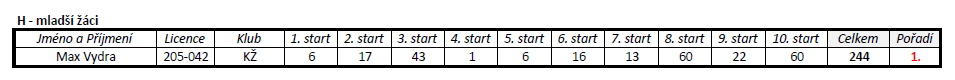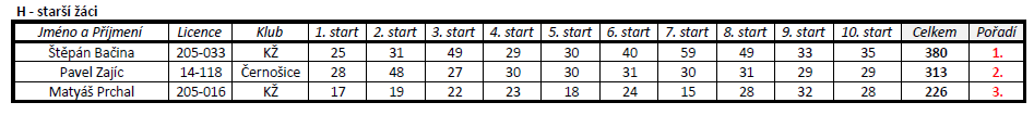 O Kamilovi jsme se zmínil. Ale Max létal svůj třetí závod s házedly, které hází za ucho. Pomalu získává zkušenosti. Mrzelo jej, že byl v kategorii jediný a neměl soupeře. Nedivím se. Ve starších žácích byli tři modeláři. Štěpán Bačina neměl přemožitele. Druhý byl Pavel Zajíc, který pravidelně zajíždí s maminkou na závody. Třetí byl Matyáš. Doufám, že Matyáš bude jezdit častěji, ale to jsem již psal minule.