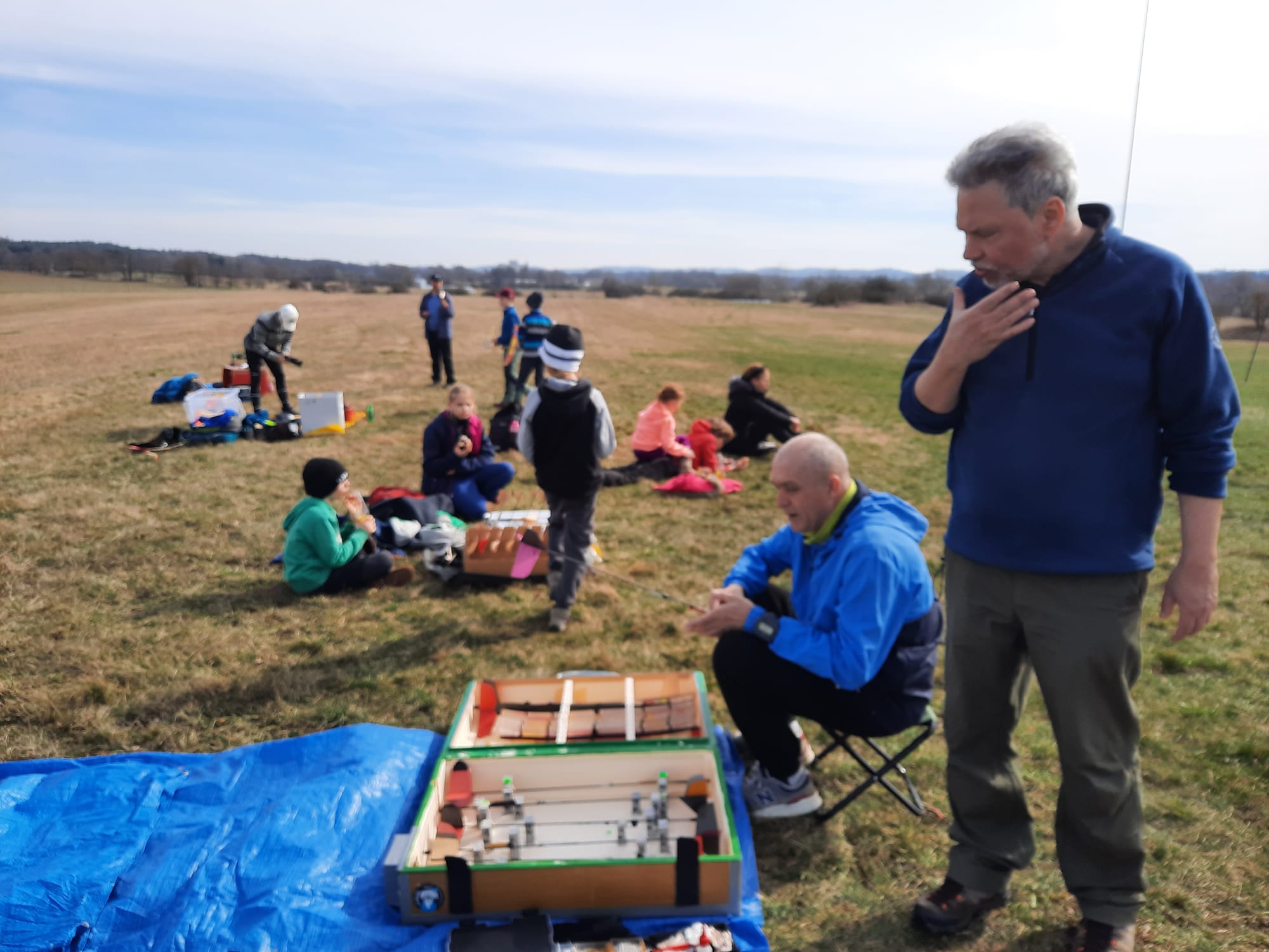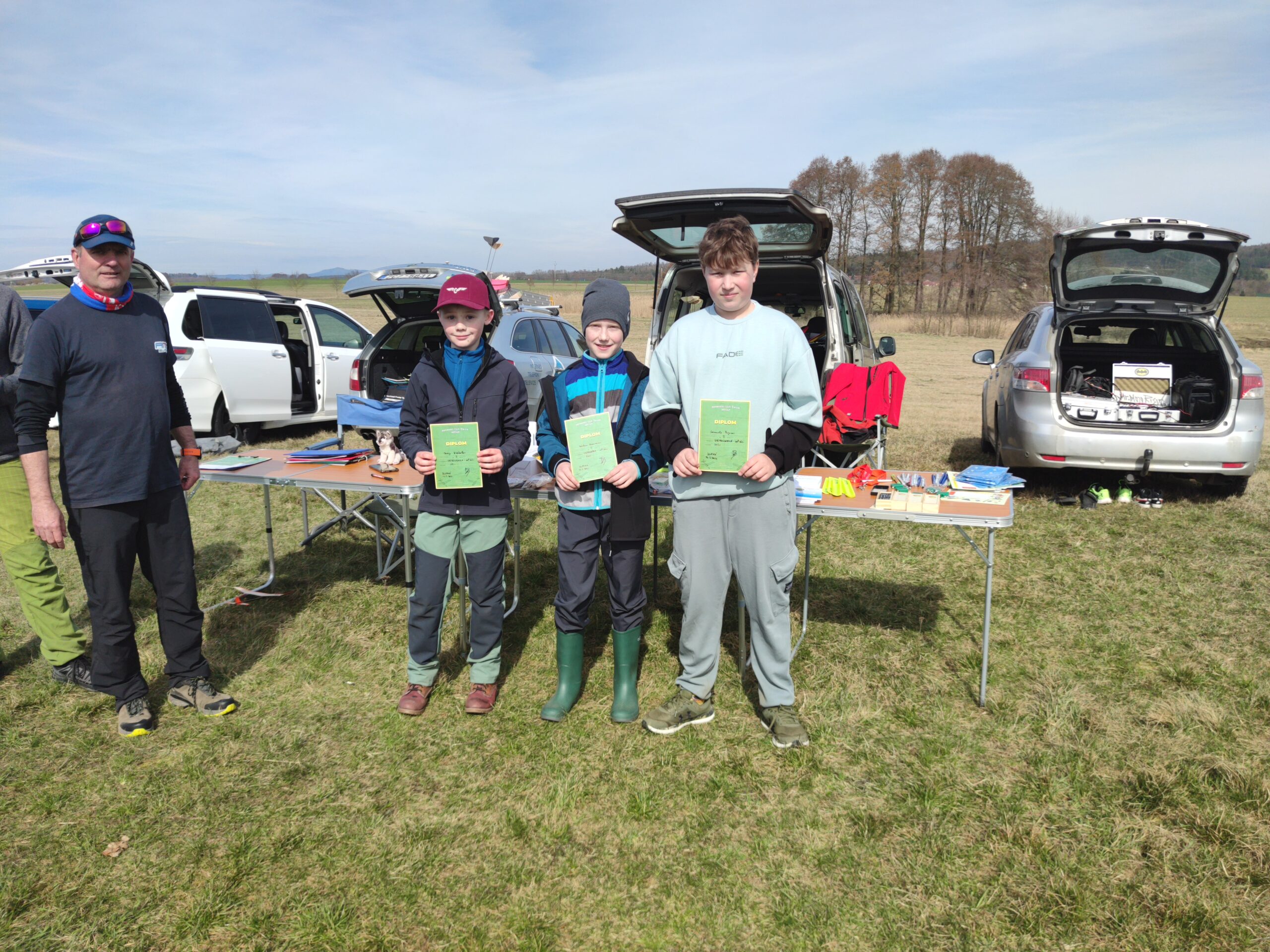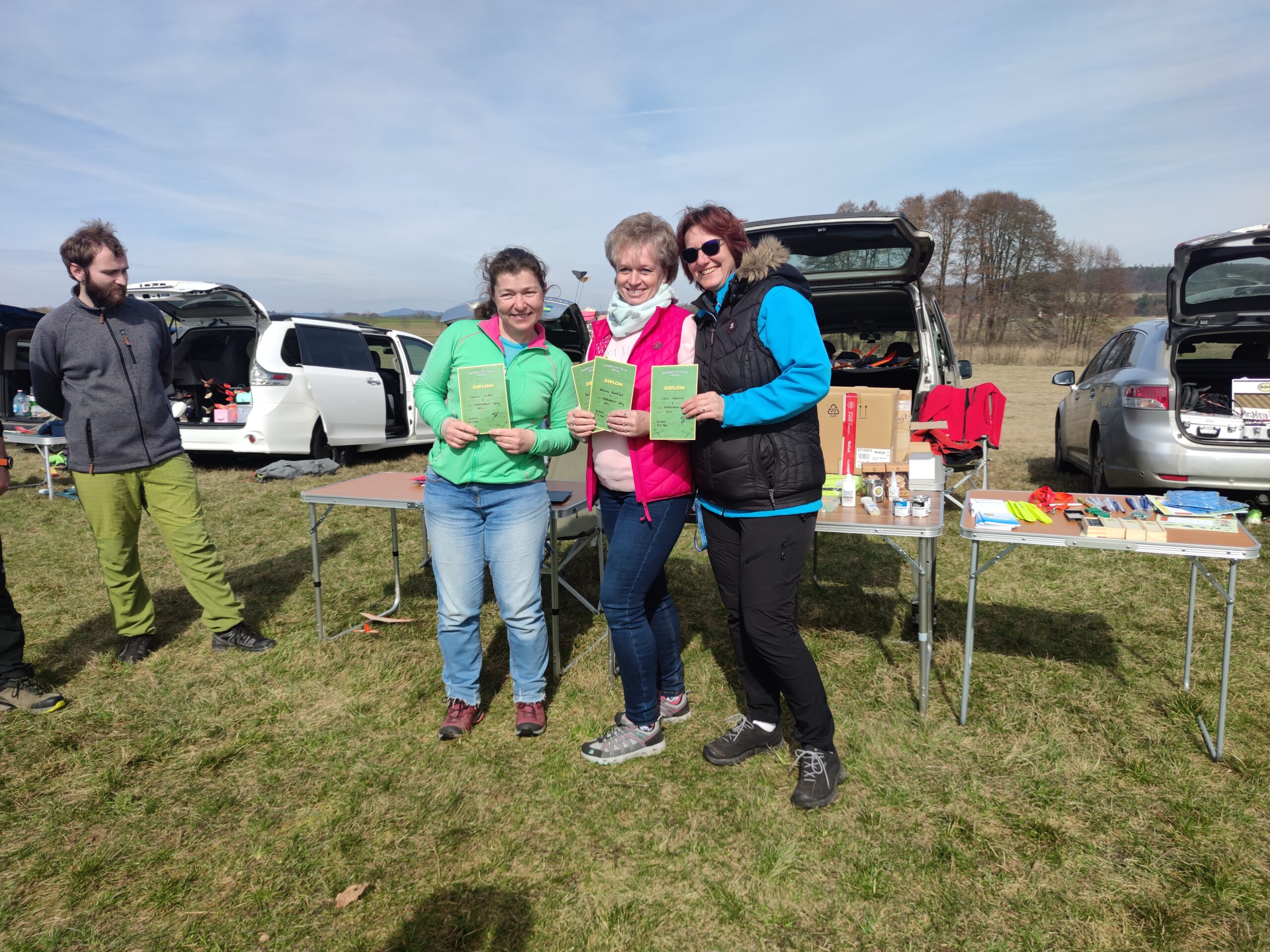 Na louce jsme byli první, asi po třech minutách se objevil Petr Loula se Zdeňkou a pak již se to začalo sjíždět ze všech světových stran. Opět v Blatné se vytvořilo zázemí s občerstvením, na stoly se nahrnuly buchty a koláče, které jsme ujídali. Vypadalo to na krásné počasí a první lety slibovaly dobré výkony. Optimisticky jsme se společně vyfotili, tedy nejprve hromadně a pak i jako KŽ tým. Ale přidali jsme tam Šífiho.