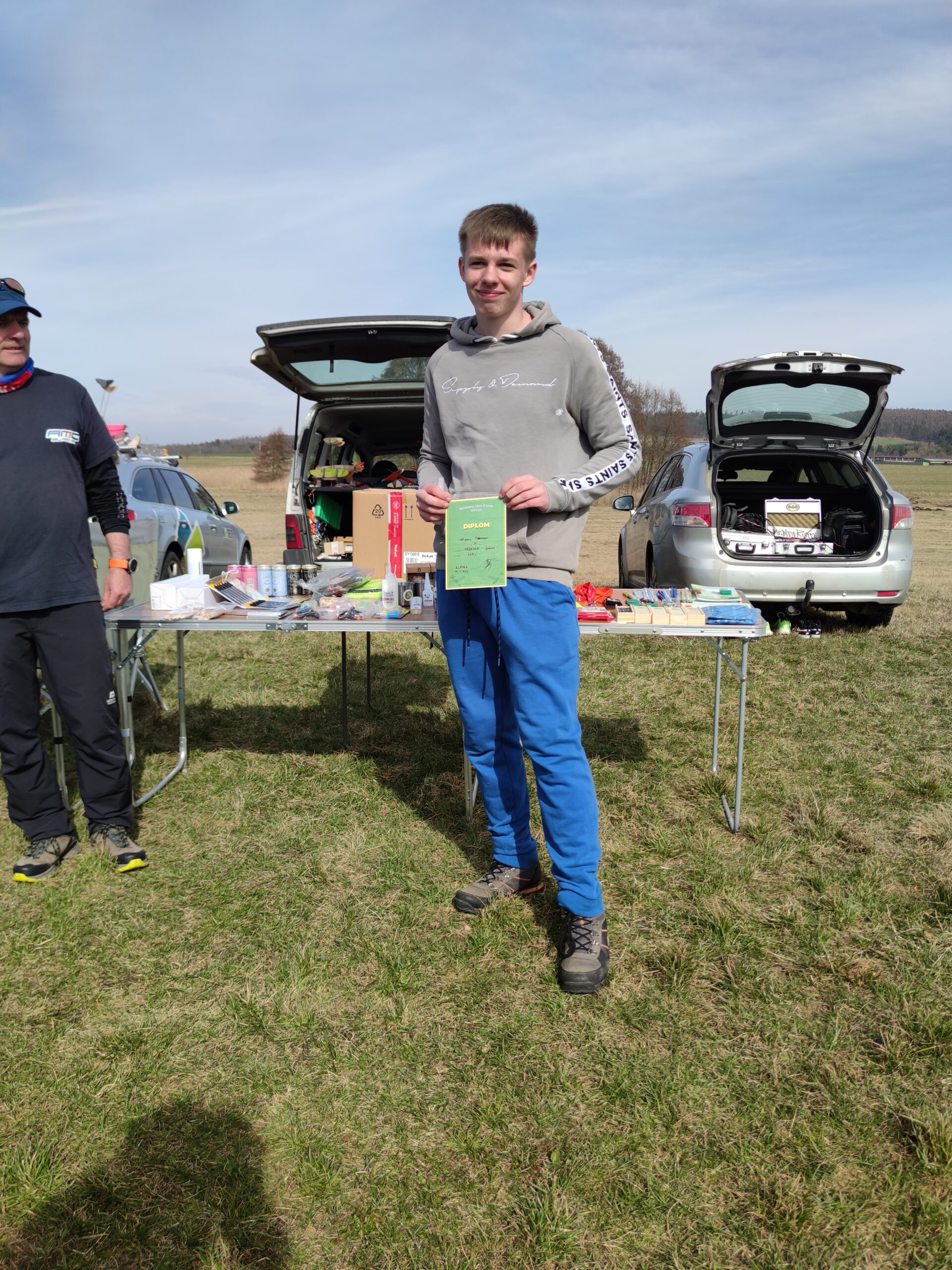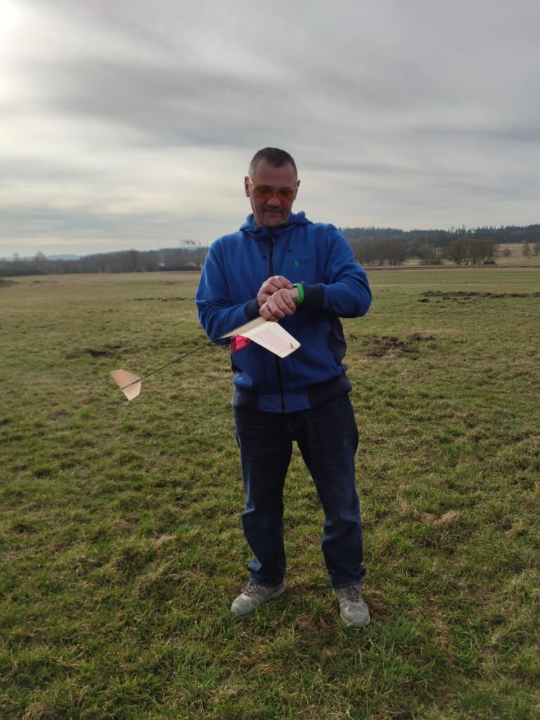 Jirka řekl, že když už je tady, tak celý závod dolétá. Házel z místa a opatrně. Protože ale odhadne, kdy je správná termika, tak nakonec zalétal velmi slušně. Jirka byl takový paralympionik.