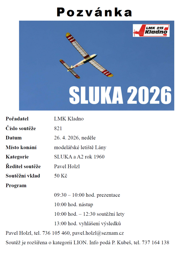 A máme tady první letošní Sluku. Létá se v Lánech v neděli 26.4.2026. Kromě Sluk a A2 se létají Lioni.
