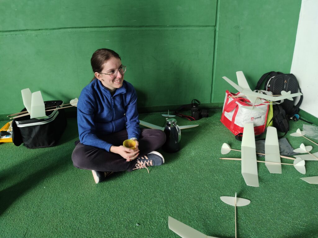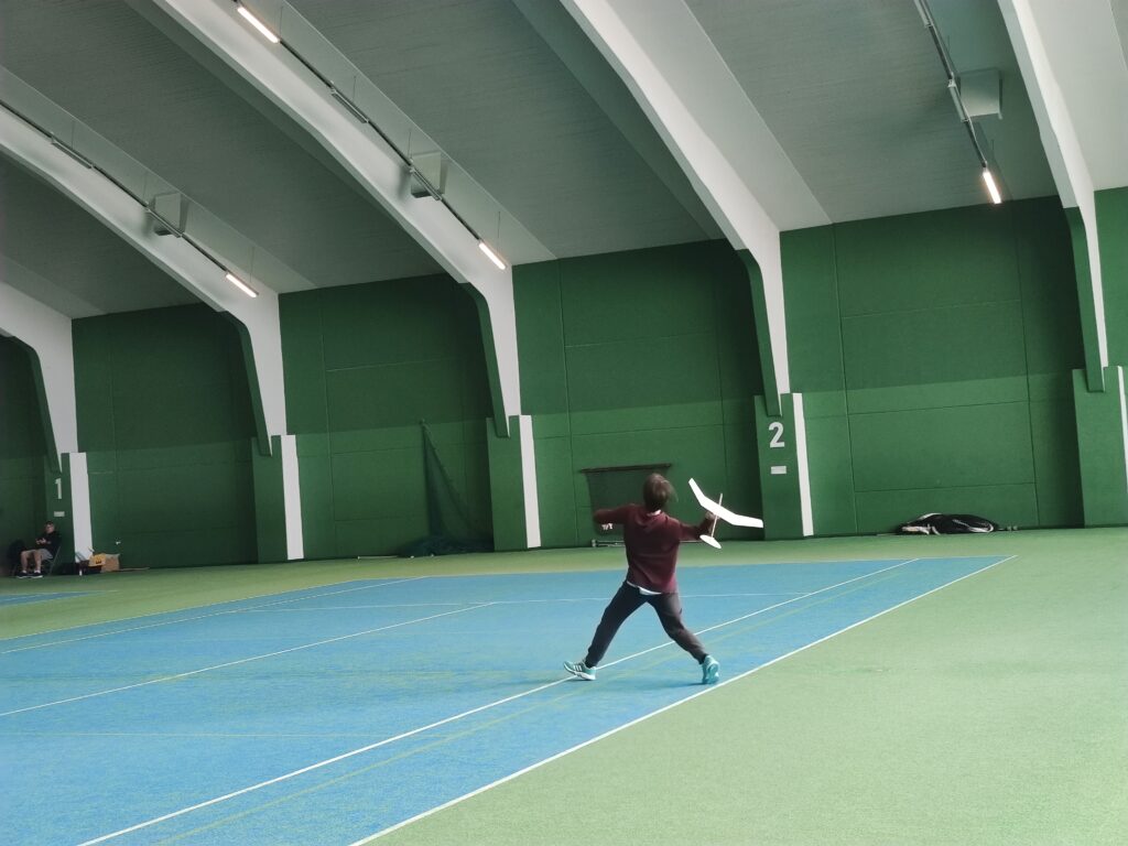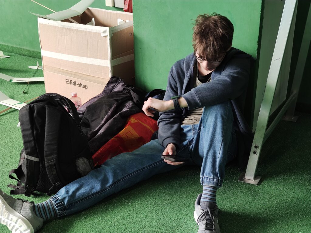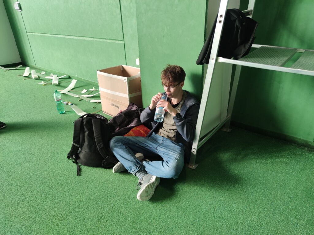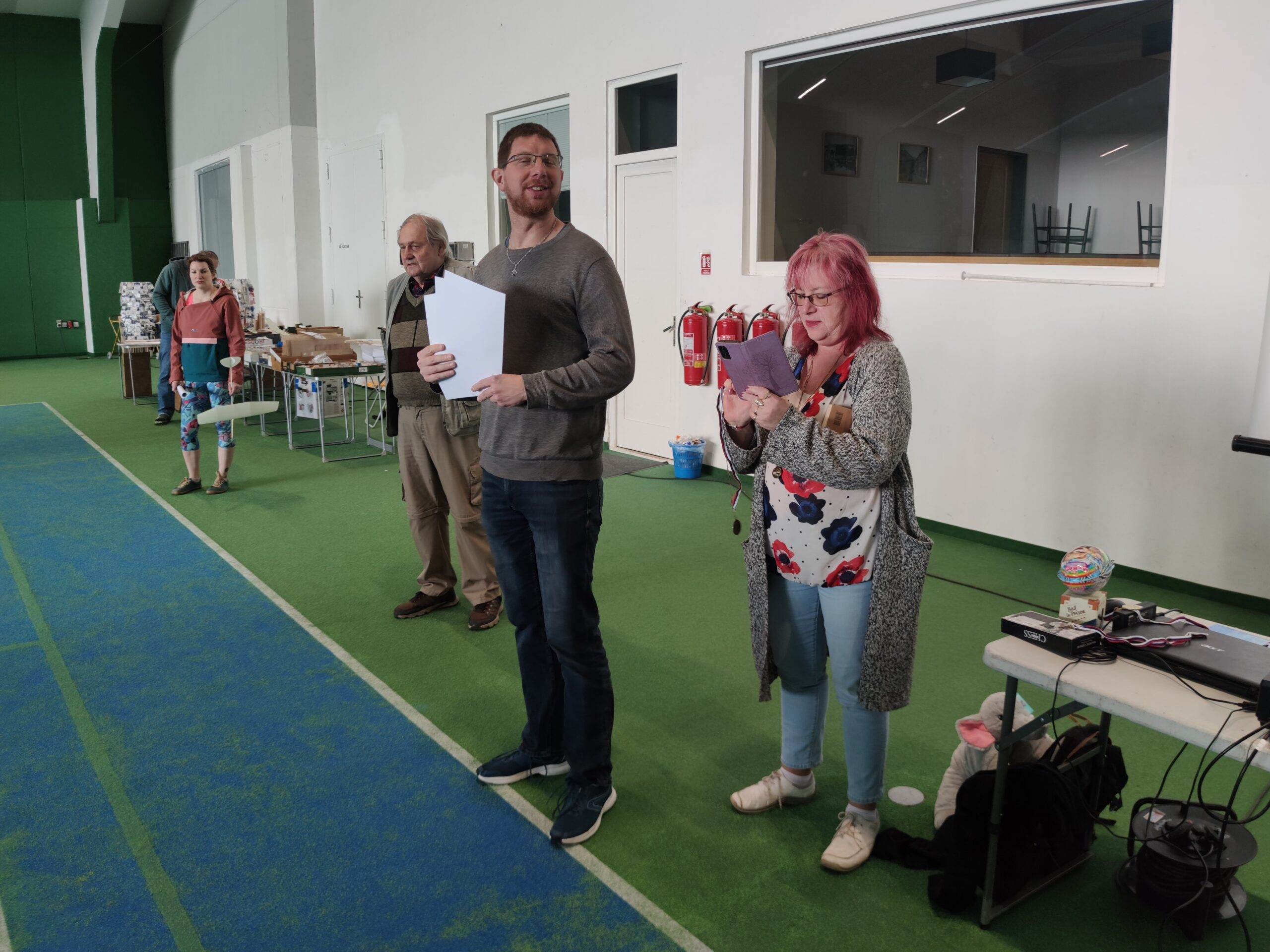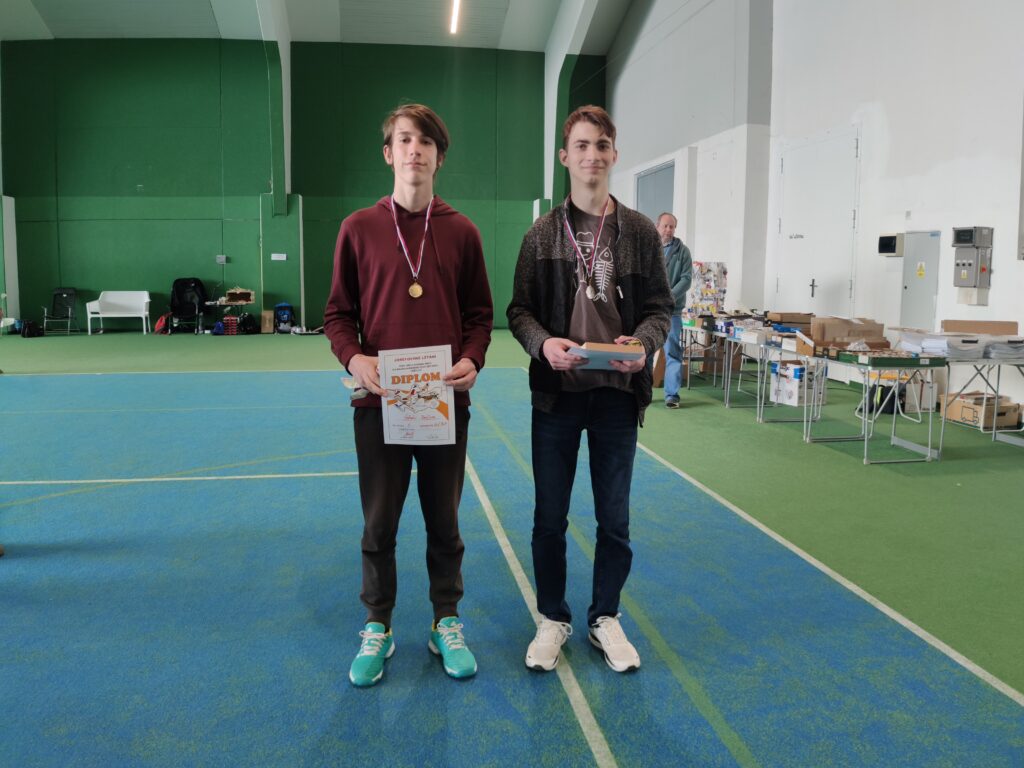 Náš cíl je jako vždy, byl překonat stovku. Po prvním kole jsem měl již 107, což bylo nadějné. Ale bylo jasné, že i ostatní se postupně zlepší. Jirkovi Juniorovi to vůbec nesedlo. Kazil, nebo házel nízko. To mě mrzelo a o přestávce jsme experimentovali s různými modely. Nic nebylo dobře, výška byla stále malá. To bylo až do konce závodu. Pavel Bačina měl slušný první hod a pak už to nebylo ono. Teprve ve třetím kole se podařilo nalétal další slušné časy. Takže přes tu stovku se v pohodě dostal. Štěpánovy lety byly docela dobré. Bohužel o tréninku došlo k rozšlápnutí jeho modelu, který vyladil a musel začít znova. Obdivoval jsem Štěpána, jak to vydýchal. Odfrkl a vzal jiný model. Maruška bere halové závody jako příjemnou změnu. Létá v klidu a relaxuje. To je dobrá cesta. Musíme jí přesvědčit na vystřelovadla.