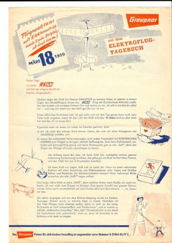 Důležitá byla reklama. Takže pro propagaci se využívaly různé letáky a podobně. Jedním z nich byl Eletroflug Tagebuch, tedy deníček elektrického letu. Byl podepsán Fredem Militkym. Což vzbuzovalo určitý pocit autenticity…